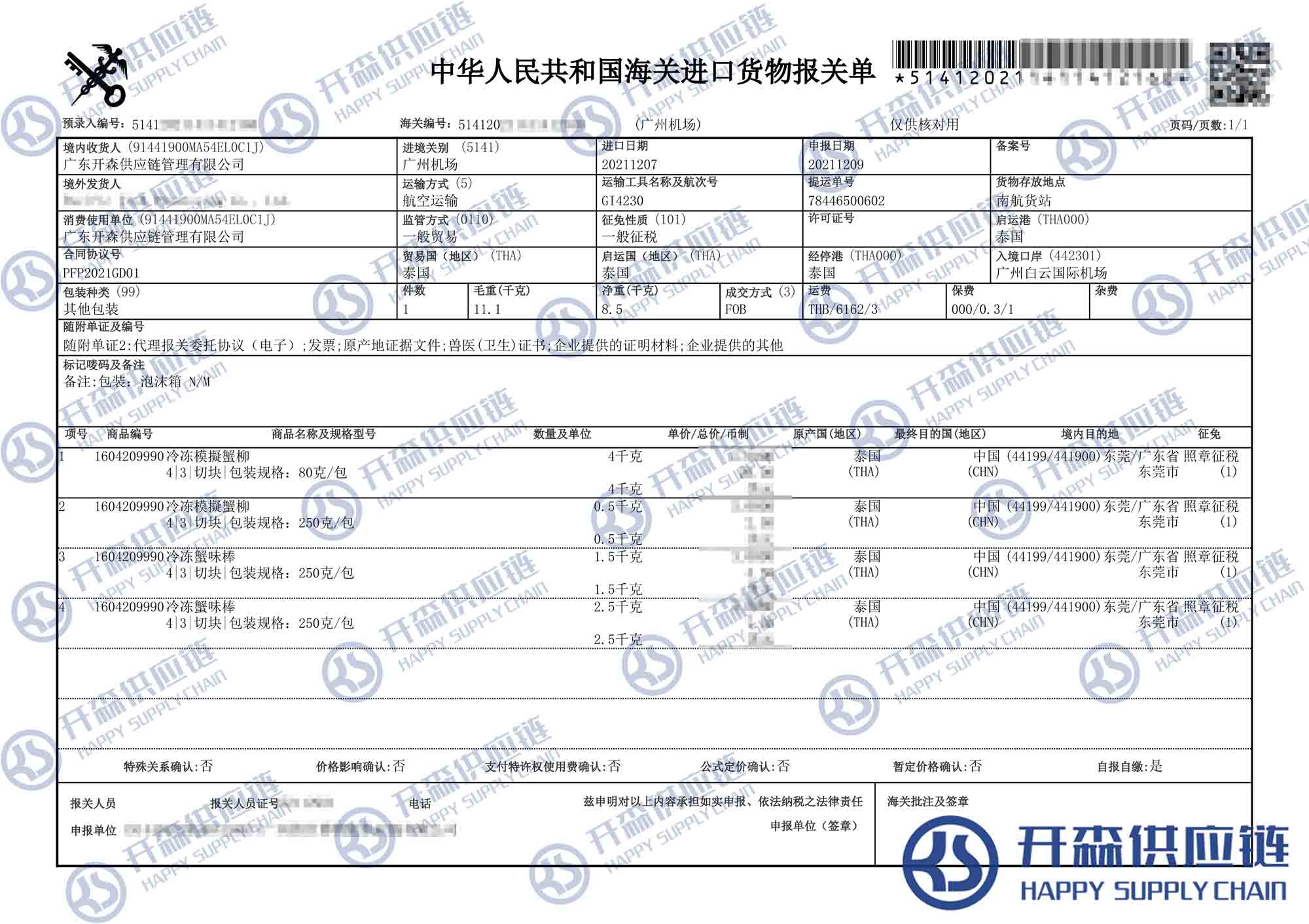 原文標題:泰國冷凍蟹柳進口報關清關代理【經典案例】