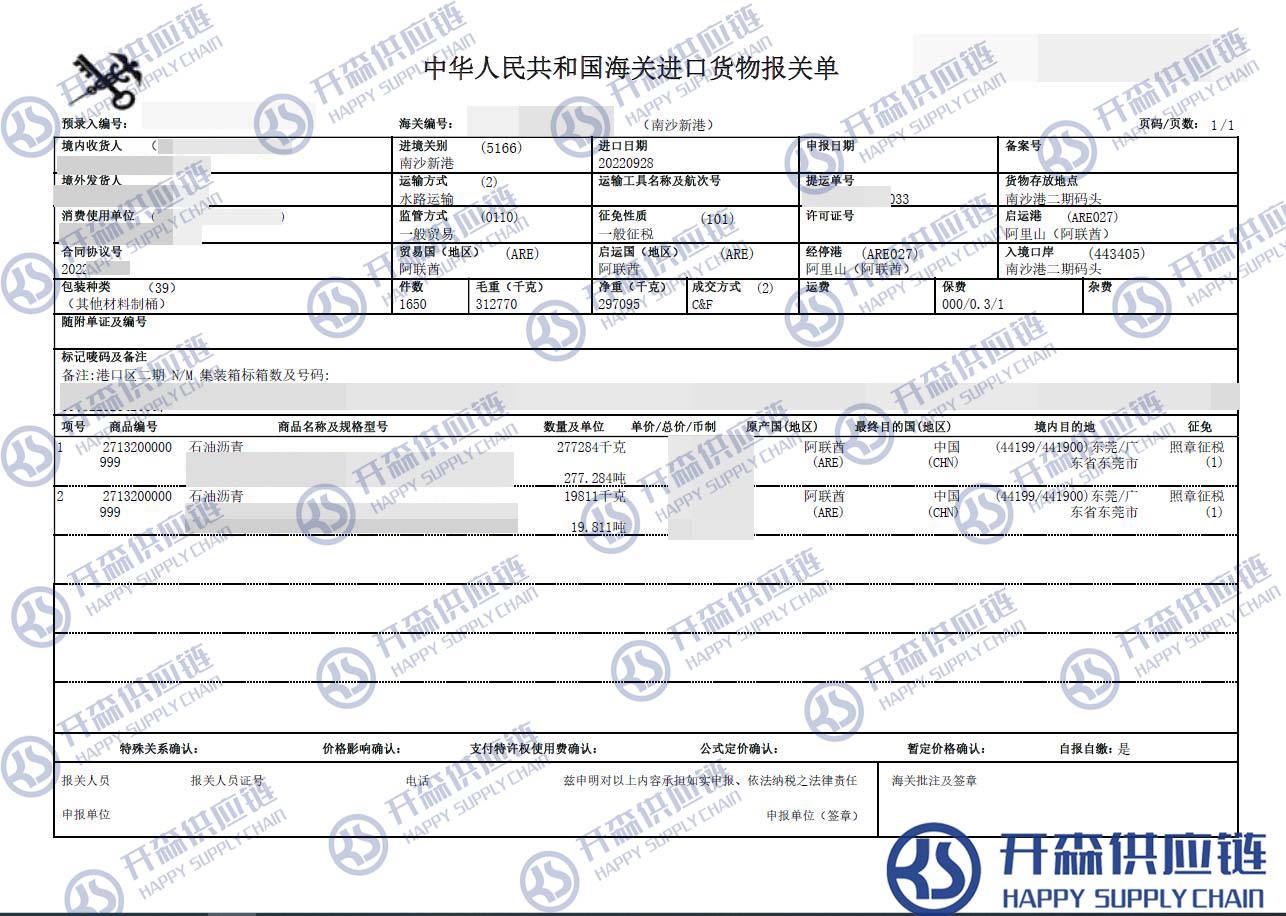 【本文結語】 上述就是廣州港石油瀝青進口報關清關代理服務【經(jīng)典案例】的全部內(nèi)容,希望能對您有所幫助,如有瀝青進口報關上任何疑問及問題可隨時在線聯(lián)系我們或撥打 18002611553,開森供應鏈擁有豐富的瀝青進口報關操作經(jīng)驗及案例,10余年進口經(jīng)驗為您所用,各類進口疑難都能為您一一解答及協(xié)助快速處理解決!