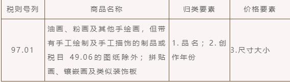 1、稅目97.01不適用于成批生產(chǎn)的鑲嵌畫復(fù)制品、鑄造品及具有商業(yè)性質(zhì)的傳統(tǒng)工藝品,即使這些物品是由藝術(shù)家設(shè)計或創(chuàng)造的。