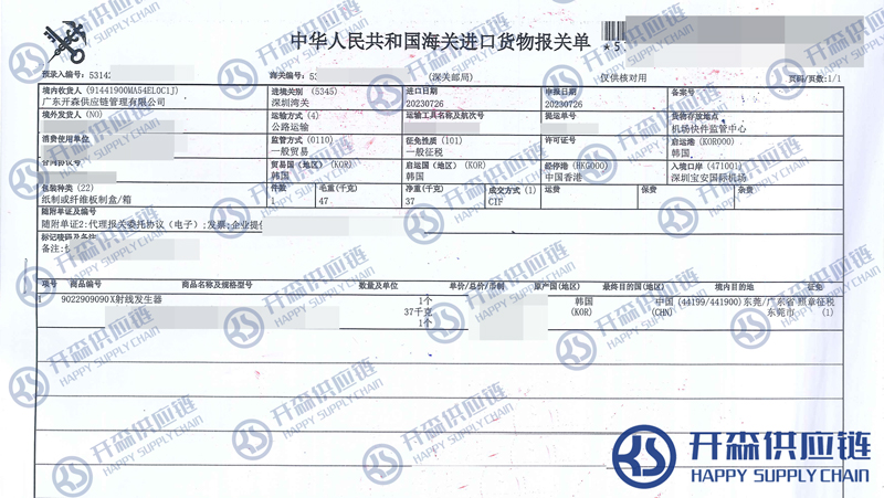 一、深圳機(jī)場(chǎng)韓國(guó)X射線設(shè)備進(jìn)口報(bào)關(guān)代理案例詳情