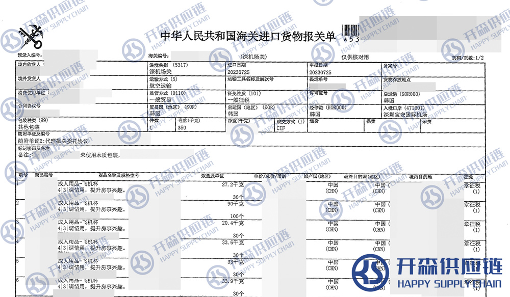 一、韓國成人用品飛機(jī)杯進(jìn)口報(bào)關(guān)代理案例詳情